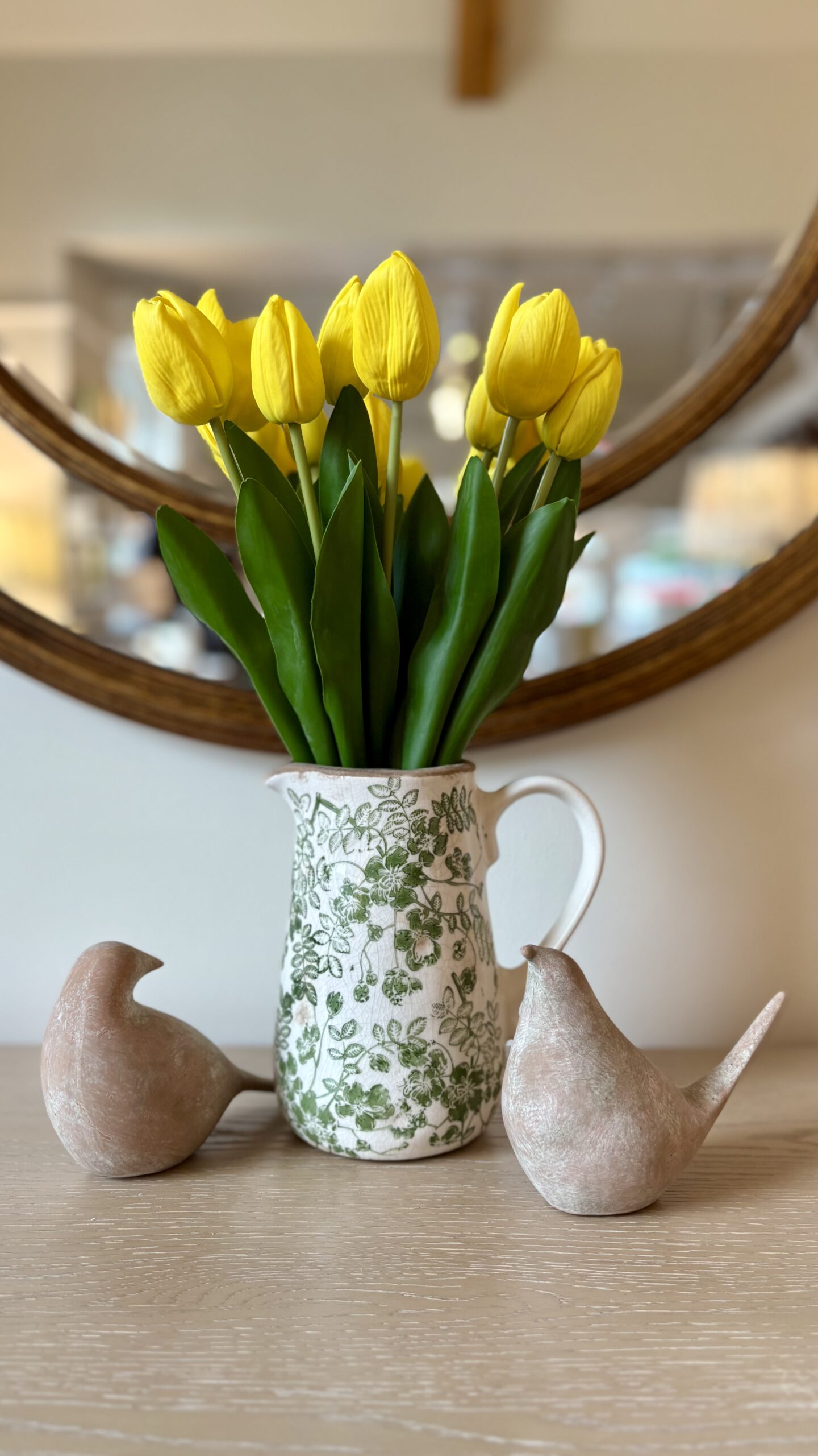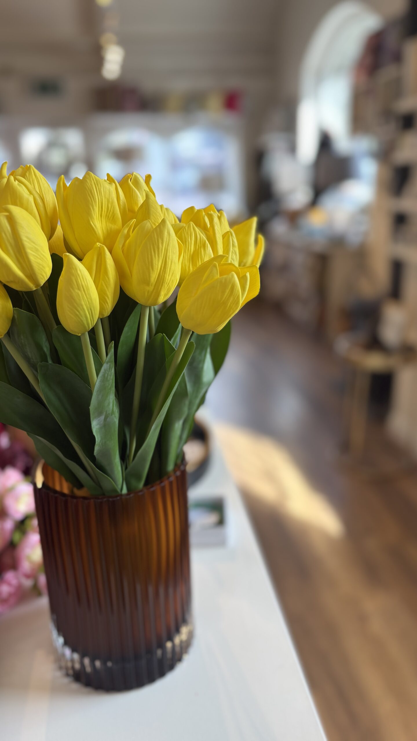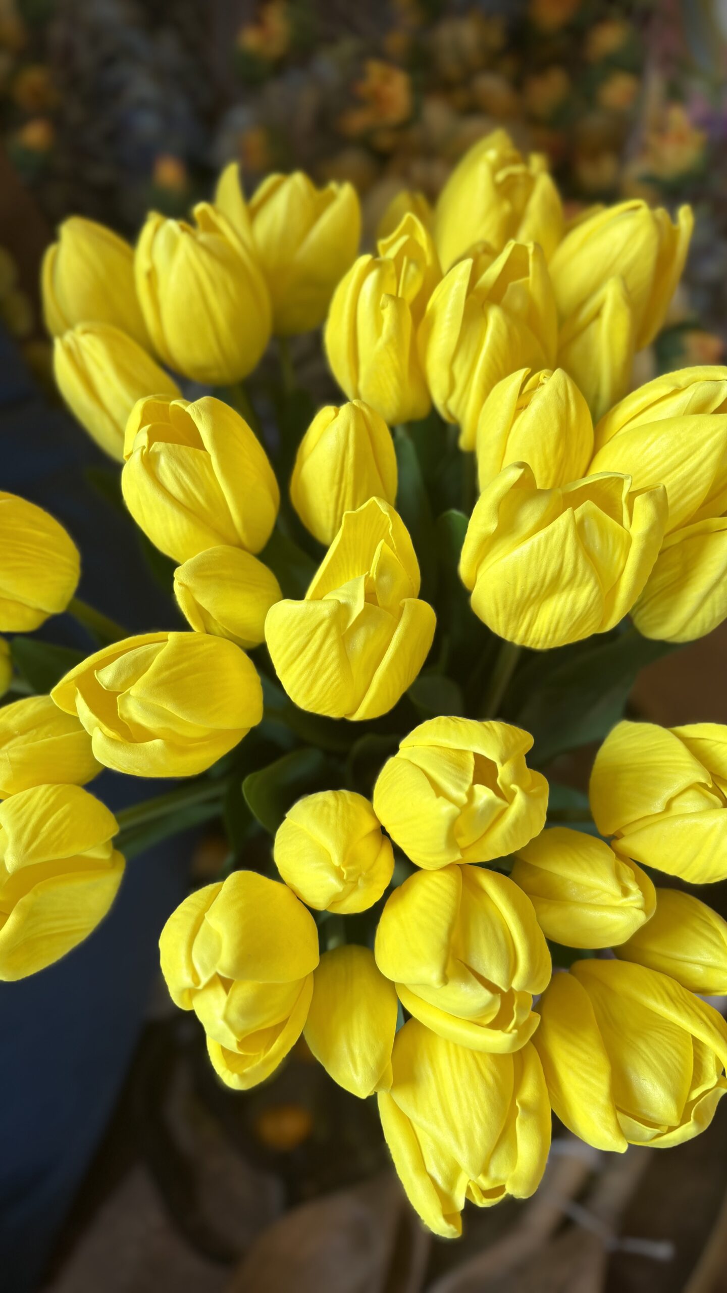 The most beautiful realistic and cheerful yellow tulip bunches. Petals have a lovely soft real feel and the leaves have a waxy realistic consistency also, presented in a tied bunch with a raffia string.