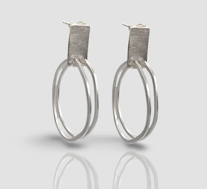 Striking yet understated, these handcrafted sterling silver earrings feature textured tile studs paired with organically shaped double hoops. Each hoop is hand-forged, creating a naturally raw and uniquely irregular silhouette that reflects the beauty of imperfection.