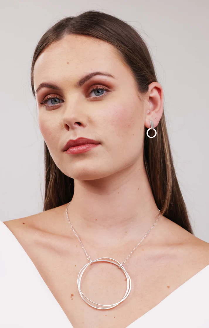 Striking yet understated, these handcrafted sterling silver earrings feature textured tile studs paired with organically shaped small hoops. Each hoop is hand-forged, creating a naturally raw and uniquely irregular silhouette that reflects the beauty of imperfection.