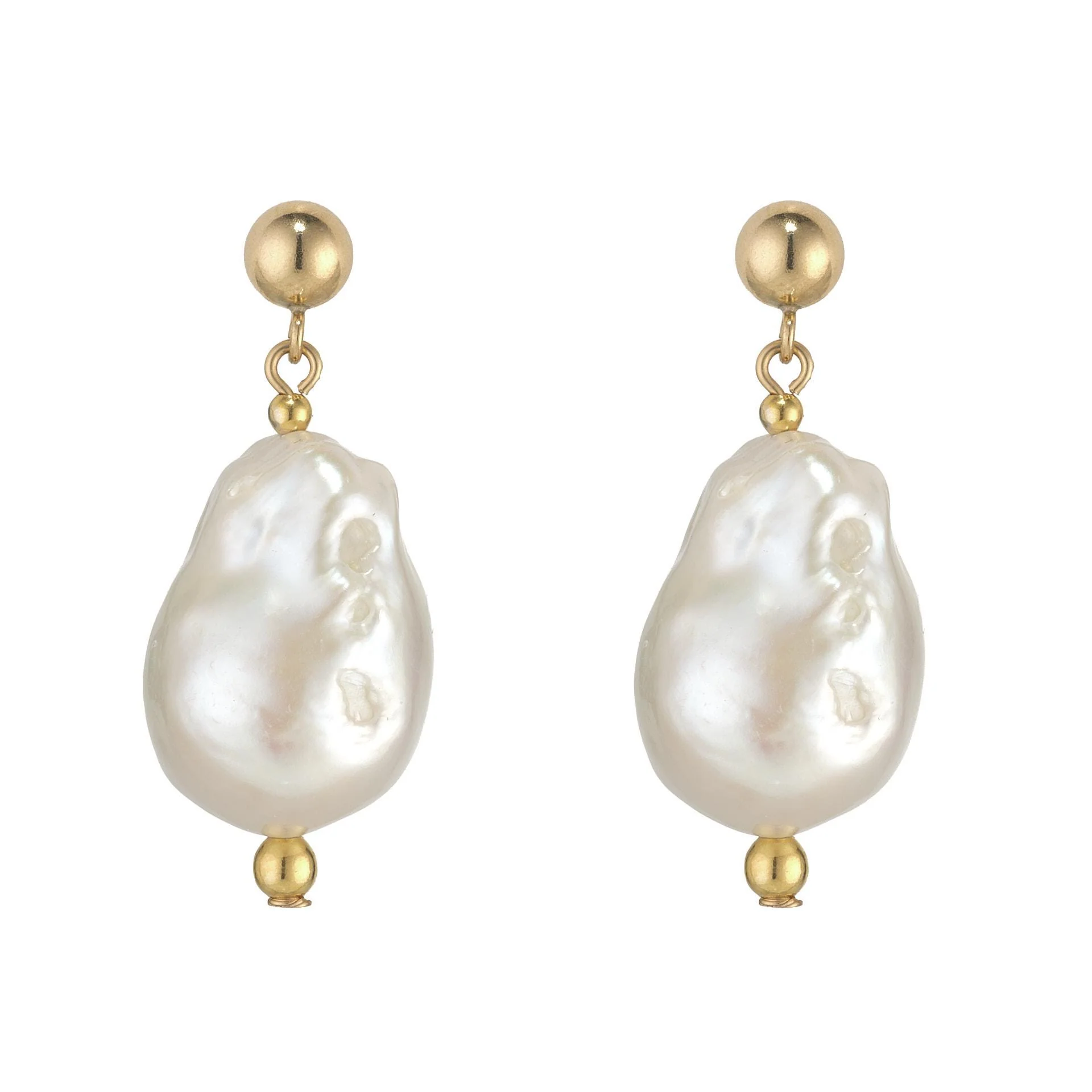 MoMuse Gold Filled Ball Stud Earring with Large Baroque Pearl Drop