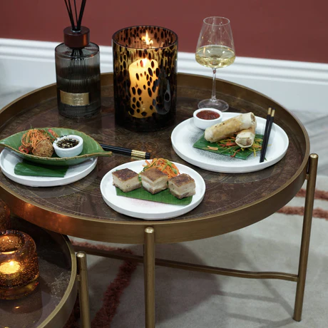 A masterclass in elegance, this round brass coloured coffee table blends timeless sophistication with artisanal detail. The rich, antique-finished brass frame supports a beautifully etched tabletop, showcasing intricate patterns that evoke heritage craftsmanship and refined taste.
